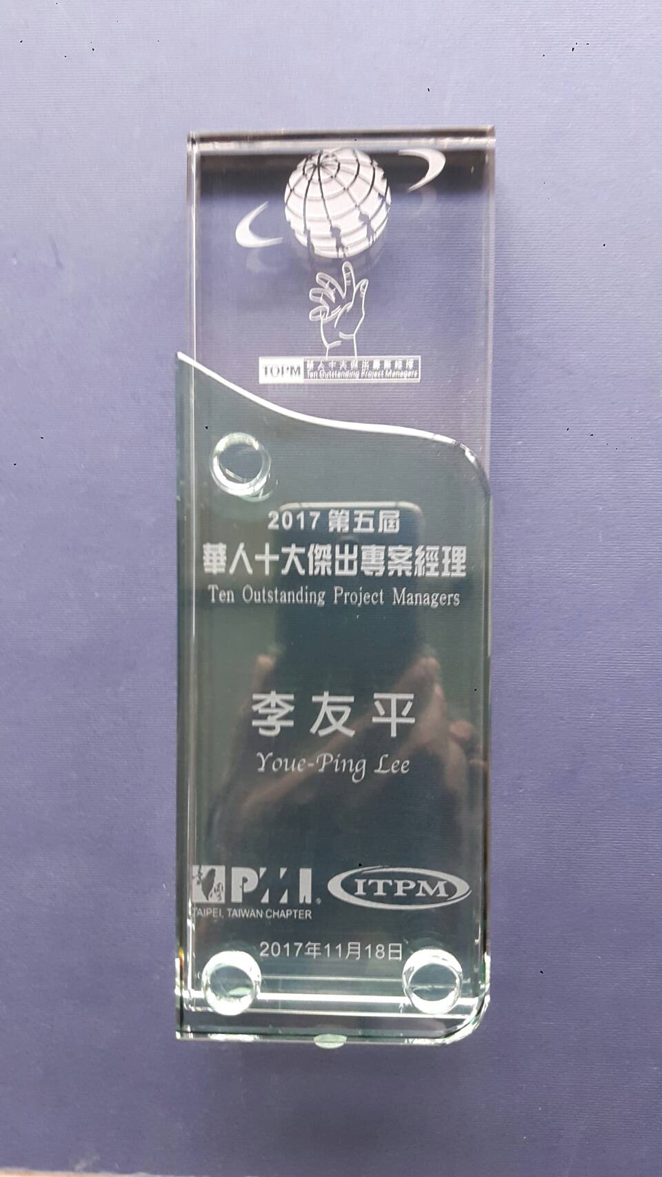 1.稀有性:目前全球有40萬位華人PMP, 但是得到華人十大傑出專案經理獎一屆僅有10位.。