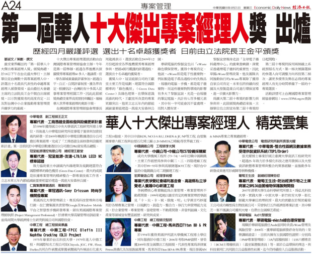 9.尊榮性:可在自己的簡報或名片打上華人十大傑出專案經理尊榮的徽章(Logo)。